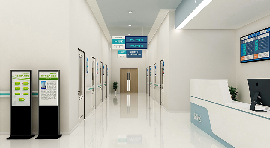 大廳公共區(qū)域主要使用落地式觸摸液晶一體機(jī)、壁掛式液晶一體機(jī)、立式液晶一體機(jī),信息發(fā)布內(nèi)容包括3D樓層導(dǎo)航、醫(yī)院文化宣傳、醫(yī)院公告、醫(yī)院咨詢、電視直播、緊急通知等。